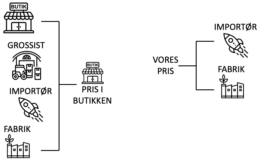 Som prismodellen ganske enkelt viser, så springes der mange led over, når det kommer til at prissætte vores produkter.