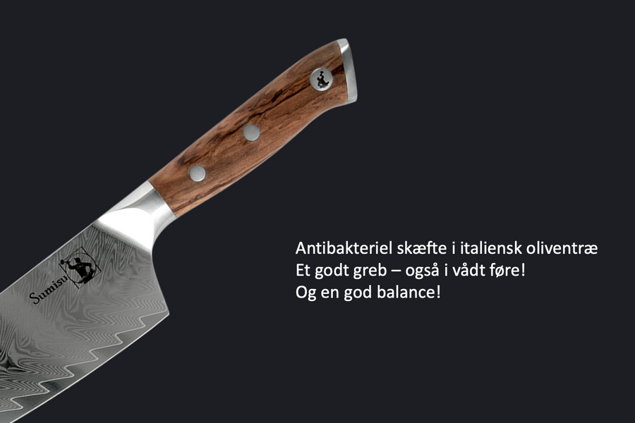Et godt greb er vigtigt, når der arbejdes med skarpe knive. Et godt greb er med til at øge sikkerheden omkring kniven. Hvis køkkenkniven ikke ligger godt og fast i hånden, så kan den smutte og uheld kan desværre ske. Derfor har vi gjort meget ud af vores greb, da grebet betyder utrolig meget for det arbejde der skal udføres. Samt sikkerheden omkring brug af værktøjet