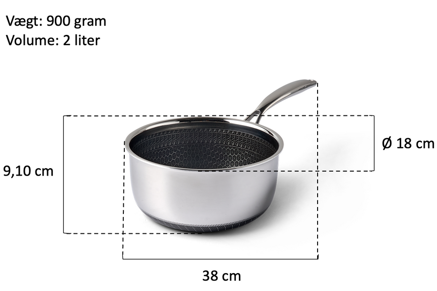 På kun 900 g. er gryden utrolig nem at håndtere og arbejde med. Det har været vigtigt for udviklingen af panden ikke bliver tung og uhandy. Derfor har vi nøje udvalgt råmaterialerne for, at kunne lave en letvægts non-stick kasserolle med alle de gode egenskaber. Kasserollen vejer ca. 900 gram uden låg og ca. 1,3 kg med låg.