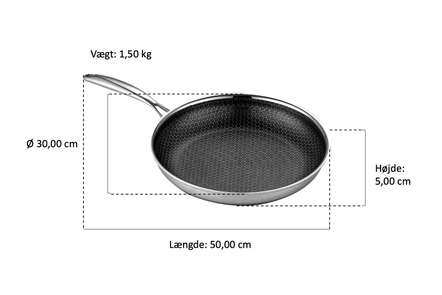 På kun 1,50 kg er stegepanden utrolig nem at håndtere og arbejde med. Det har været vigtigt for udviklingen af stegepanden ikke bliver tung og uhandy. Derfor har vi nøje udvalgt råmaterialerne for, at kunne lave en letvægts non-stick stegepande med alle de gode egenskaber.