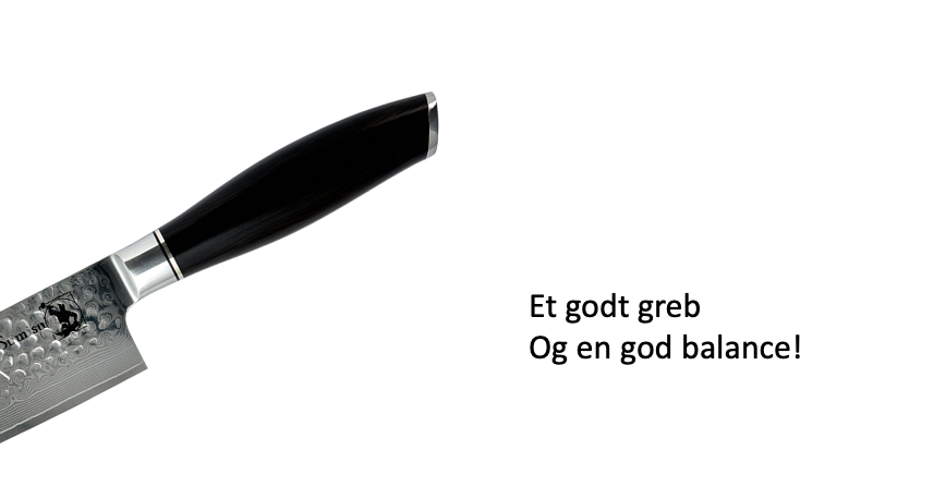 Et godt greb er vigtigt, når der arbejdes med skarpe knive. Et godt greb er med til at øge sikkerheden omkring kniven. Hvis køkkenkniven ikke ligger godt og fast i hånden, så kan den smutte og uheld kan desværre ske. Derfor har vi gjort meget ud af vores greb, da grebet betyder utrolig meget for det arbejde der skal udføres. Samt sikkerheden omkring brug af værktøjet