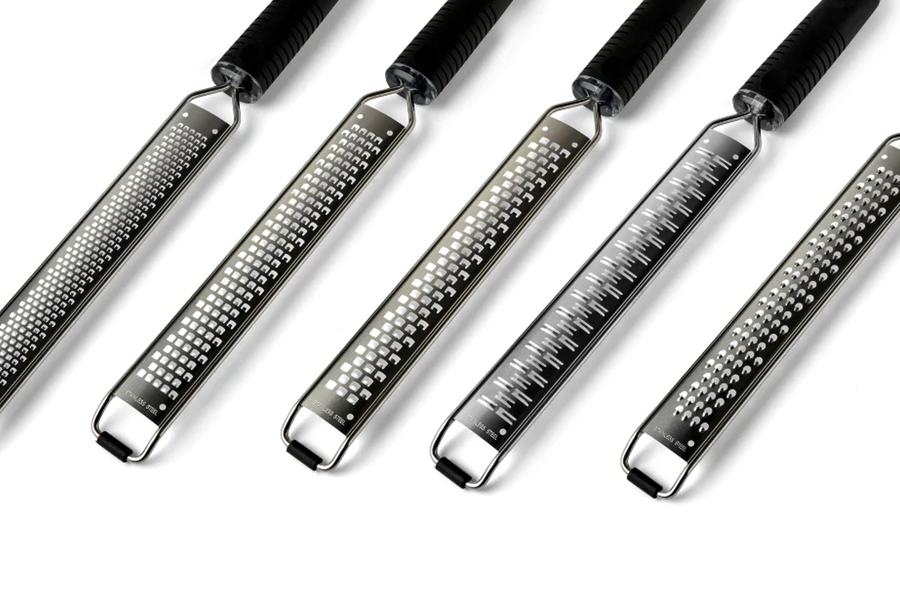 Til hvad og hvilke retter bestemmer du. Vi har lavet fem forskellige, som vi mener opfylder alle de behov dette måtte være. Vi vil ikke bestemme, hvad de forskellige rivejern er til, da vi mener flere kan bruges til ost, chokolade eller lign. Skal du eks. rive parmasanen fint ud over pastaretten eller parmasanen i flager ud over pizzaen, så er der et rivejern til begge opgaver. Det kan også være at det er chokoladen, der skal rives fint ud over isdesserten, eller chokoladen, der skal rives groft ud over chokoladekagen - ja, så kan du med dette sæt rivejern løse alle opgaverne. Det er kun din fantasi, der bestemmer, hvilke rivejern der passer til din madlavning.